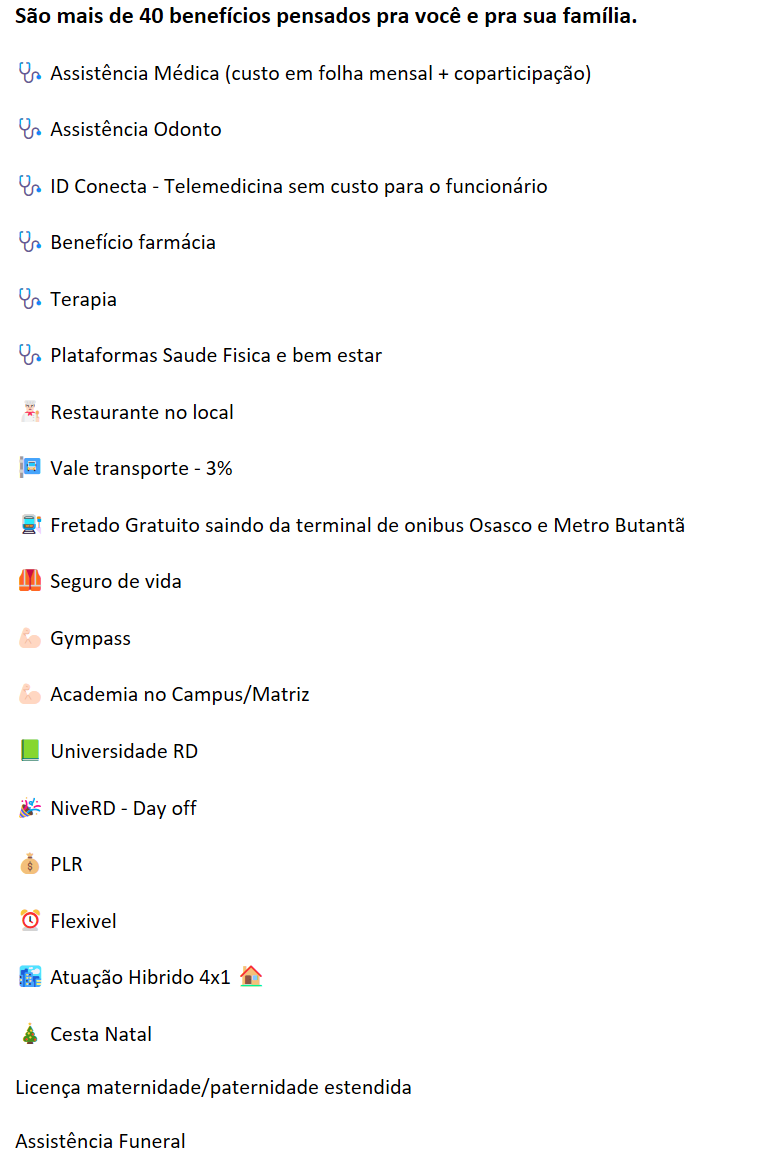 Na RD Saúde, você vai acelerar seu aprendizado em um ambiente dinâmico, com oportunidades reais de desenvolvimento e crescimento profissional.
